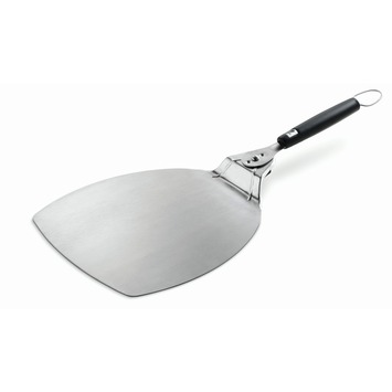 Met de Weber Original pizzaspatel verplaats je eenvoudig je pizza van het werkblad naar de barbecue en weer terug. De brede schep van roestvrij staal schuift soepel onder het deeg en geeft voldoende ondersteuning, ook bij een zwaarder belegde pizza. Ideaal bij het bakken op een pizzasteen of direct op het rooster. Door het lange handvat houd je afstand van de hitte en voorkom je verbrande vingers. De pizzaspatel is stevig uitgevoerd, ligt goed in de hand en is bestand tegen hoge temperaturen. Door het dunne, schuine uiteinde schuif je de spatel makkelijk onder een krokante korst zonder deze te beschadigen.