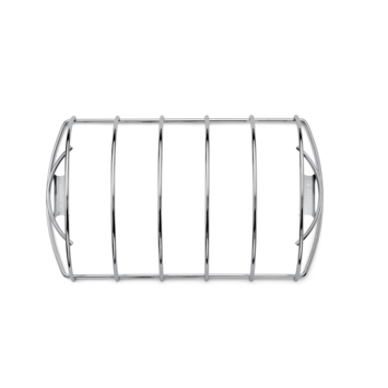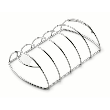 De Weber® Ribbetjesrek. Roestvrijstalen rek dat vijf spareribs kan houden. Het vlees gaart op deze manier gelijkmatig. Geschikt voor houtskoolbarbecues van 47 cm en voor gas- en elektrische barbecues vanaf de Q™ 200/2000 serie.