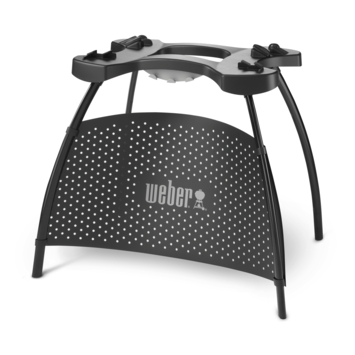 De Weber® Stand, geschikt voor Q™ 1000 en 2000 serie. Stabiel onderstel met optimale werkhoogte voor veilig en comfortabel barbecueën. Inclusief luxe afscherm voor bijvoorbeeld de gasfles.