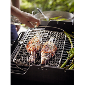 De Weber viskorf groot is is geschikt voor de bereiding van fijn of delicate gerechten op de barbecue. Zo is de korf ideaal voor het bereiden van vis, maar ook groente kun je hier goed in bereiden. Deze viskorf is geschikt voor gasbarbecues vanaf Q200/2000 en houtskoolbarbecues met een minimale diameter van 57 centimeter. De Weber viskorf is 28,8 centimeter hoog, 46 centimeter breed en 6 centimeter diep.