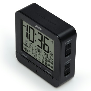 Alecto AK-20 wekker met thermometer en weergave binnentemperatuur is verkrijgbaar in de kleur: zwart. Op het beeldscherm van deze wekker kun je veel informatie aflezen. Te beginnen met de tijd, aangegeven in uren, minuten en seconden; tot op de milliseconde nauwkeurig dankzij de DCF-gestuurde klok. Daaronder staan de datum, dag en temperatuur vermeld. En daaronder de wektijden die je hebt ingesteld.