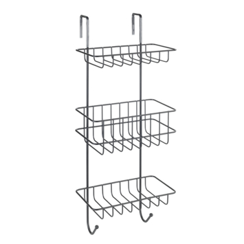 Met de Revigo doucherek van hoogwaardig staal creëer je eenvoudig extra opbergruimte in de douche zonder te boren. Het doucherek kan eenvoudig aan de douchewand worden ophangen door middel van twee haken. De afstand tussen de haken is 15 cm. Het doucherekje in zwart bestaat uit drie mandjes met drie verschillende hoogtes. Zo er is altijd plaats voor verschillende soorten producten zoals zeep, shampoo of spons. Onderaan de doucherek zijn er nog een twee haken voor het ophangen van bijvoorbeeld een borstel of washandje. De Revigo is naast zwart ook beschikbaar in verchroomd staal.
