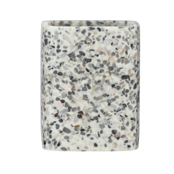 De tandenborstelbeker Terrazzo is duurzaam en hoogwaardig in kwaliteit. De Terrazzo badkamercollectie is gemaakt van Polyresin; een mix van gemalen natuursteen wat wordt vermengd met een vloeibare kunsthars. De tandenborstelbeker is daardoor zo hard als steen, vochtbestendig en kleurecht. Dit maakt het gebruik ervan in de badkamer ideaal.De Terrazzo tandenborstelbeker creëert met zijn patroon in wit, beige en grijze accenten een trendy en decoratieve sfeer aan jouw badkamer. De Terrazzo serie heeft meer accessoires voor jouw badkamer en toilet in een terrazzo tegellook.