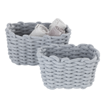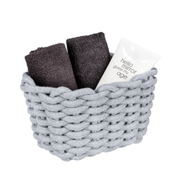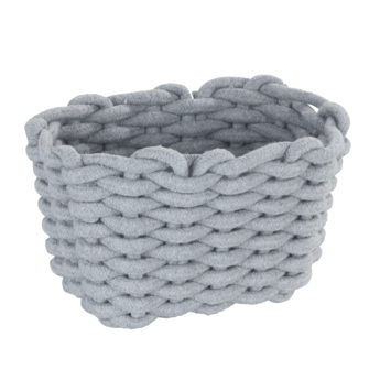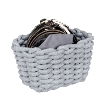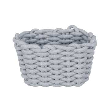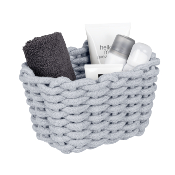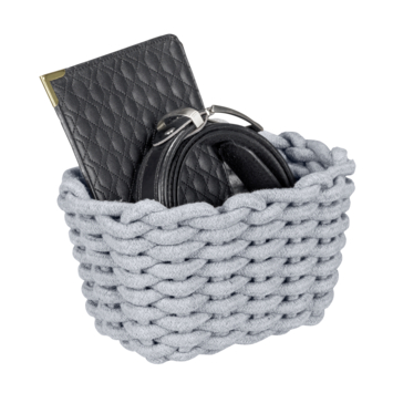 De heerlijk zachte opbergmand Tia S is de ideale organizer voor het hele huishouden. De Scandinavische grijze opbergmand past mooi bij donkere, lichte of bruine meubels.Het is een sierlijk mandje dat overal gebruikt kan worden voor het opbergen van onder andere badkameraccessoires, sokken en ondergoed, snoepjes, sjaals en mutsen. De gevlochten opbergmand is gemaakt van de volgende materialen: gebreid katoenen koord: 38,5% polyester, 36,5% katoen, 19,8% viscose, 5,2% polyamide. Naast de kleine opbergmand Tia S is ook de opbergmand Tia M verkrijgbaar.