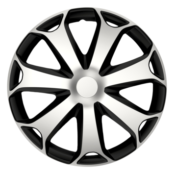 De zilverkleurige en zwarte Gorecki Mega 16 inch wieldoppen geven uw auto een