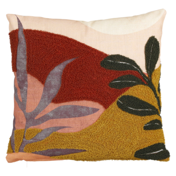 Het Wies Sierkussen is een musthave tijdens een knusse avond op de bank. Door het zachte materiaal en de mix van warme texturen kun je niet anders dan er lekker tegenaan kruipen. De bladeren maken het geheel af en geven het kussen een botanische look. De afmetingen van het kussen zijn L45 x B45 cm.