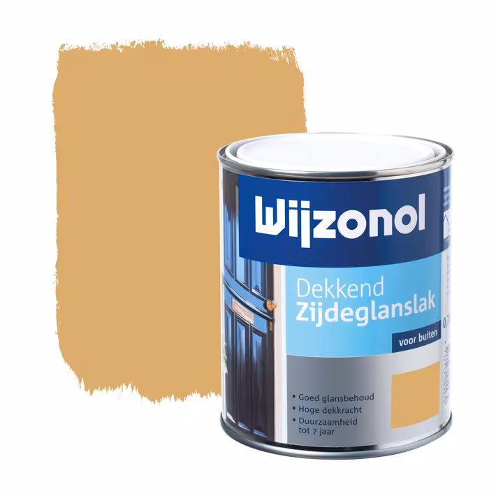 De Wijzonol lak zijdeglans dekkend korengeel 750 ml is een lakverf met een uitstekende buitenduurzaamheid tot wel 8 jaar. Het is de ideale afwerking voor goed en hoogwaardig schilderwerk op je houten kozijnen, ramen, deuren, gevelbetimmering en dergelijke. De aflak is buiten toepasbaar als een fraai zijdeglanzende afwerking van nieuw, onbehandeld hout (voorbehandeld met Wijzonol Dekkend Grondlak), bestaand schilderwerk en voorbehandeld metaal en kunststof. De lak heeft een goed glansbehoud, een goede vloei en een hoge dekkracht. De lak is korengeel van kleur en heeft een zijdeglans afwerking. Het blik bevat 750 milliliter dekkende lak, dit is genoeg voor een oppervlakte van zo'n 9 tot 11 vierkante meter.