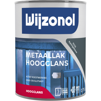 De Wijzonol Metaallak Hoogglans koningsblauw 9226 750ml is een ijzersterke, dekkende metaal lakverf met een uitstekende buitenduurzaamheid tot wel 7 jaar. Deze actief roestwerende; kras- en slijtvaste aflak is buiten toepasbaar en de ideale afwerking voor goed en hoogwaardig schilderwerk op metalen ondergronden, zoals hekwerk. Ook binnenshuis toepasbaar op bijvoorbeeld CV-radiatoren en leidingen (voorbehandeld met Wijzonol Metaal Primer). Deze fraai hoogglanzende aflak kan zowel op nieuw, onbehandeld metaal (voorbehandeld met Wijzonol Metaal Primer), bestaand schilderwerk en voorbehandeld metaal. De lak is eenvoudig te verwerken en terpentine verdunbaar. De lak is koningsblauw van kleur en heeft een hoogglans afwerking. Het blik bevat 750 milliliter dekkende metaallak, dit is genoeg voor een oppervlakte van zo’n 7 tot 9 vierkante meter.