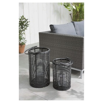 Windlicht rotan zwart 40x52 is de ideale sfeervolle bescherming voor een kaars in jouw tuin. Voor bijvoorbeeld een zwoele zomeravond, waarbij je met vrienden of familie in de tuin wil genieten van tropische sferen. De hoogte is 52 centimeter en heeft een diameter van 40 centimeter. Doordat het product gemaakt is van rotan, oogt deze natuurlijk maar toch modern.