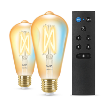 WiZ Connected LED edison E27 50W 2 stuks + afstandsbediening filament gold koel tot warmwit licht dimbaar