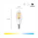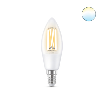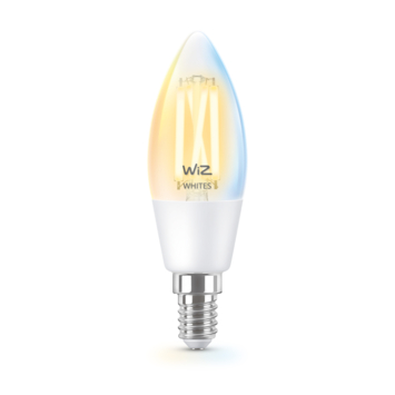 Deze slimme kaarsvormige WiZ LED-filamentlamp zorgt voor sfeer in huis. Kies heel eenvoudig uit verschillende tinten warmwit tot koelwit licht, die je helpen met ontspannen of juist concentreren. Je kunt timers instellen die je slimme lampen automatisch in- of uitschakelen gebaseerd op jouw dagritme, bijvoorbeeld helder wit licht in de ochtend en zacht warm licht in de avond. Je kunt ze bedienen met je smartphone of stem, zelfs als je niet thuis bent. WiZ lampen werken rechtstreeks vanuit de doos, op je eigen wifinetwerk. Deze lamp heeft een E14-fitting, en past dus in de meeste lampen met kleine fitting.