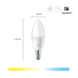 Deze slimme WiZ LED-kaarslamp met instelbaar wit licht maakt het leven gemakkelijker. Stel verschillende tinten warmwit tot koelwit licht in die je helpen ontspannen of juist concentreren. Je kunt timers instellen die je lampen automatisch in- of uitschakelen gebaseerd op jouw dagritme. Bijvoorbeeld helder wit licht in de ochtend en zacht warm licht in de avond. Je kunt ze bedienen met je smartphone of stem, zelfs als je niet thuis bent. WiZ lampen werken op je eigen wifinetwerk. Meer heb je niet nodig. Deze lamp heeft een E14-fitting, en past dus in de meeste lampen met kleine fitting.