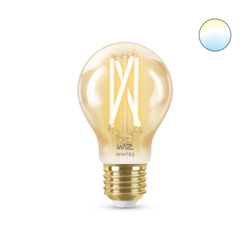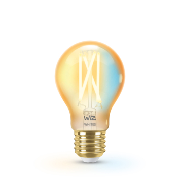 Breng gemakkelijk, slimme verlichting in huis. Deze goudkeurige WiZ LED-filamentlamp geeft sfeervol warm- en koelwit licht dat je helpt met ontspannen of juist concentreren. Je kunt timers instellen die je lampen automatisch in- of uitschakelen, gebaseerd op jouw dagritme. Bijvoorbeeld helder wit licht in de ochtend en zacht warm licht in de avond. Je kunt ze bedienen met je smartphone of stem, zelfs als je niet thuis bent. WiZ lampen werken op je eigen wifinetwerk. Meer heb je niet nodig. Deze peervormige lamp heeft een E27-fitting, en past dus in de meeste lampen met grote fitting.
