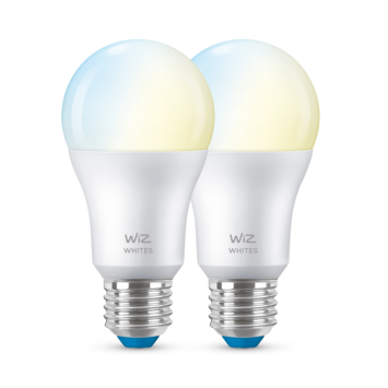 Begin eenvoudig met slimme verlichting met deze twee WiZ LED-lampen. De peervormige lampen geven zowel warm- als koelwit licht, wat je helpt ontspannen of concentreren. Schakel je lampen automatisch in of uit met handige timers, gebaseerd op jouw dagritme. In de ochtend stel je bijvoorbeeld helder wit licht in en 's avonds zacht warm licht. WiZ lampen werken op je eigen wifinetwerk en kan je bedienen met je smartphone of je stem, zelfs als je niet thuis bent. Beide lampen hebben een E27-fitting, die past in de meeste lampen met grote fitting.