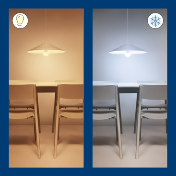 Deze slimme, peervormige, WiZ LED-lamp met instelbaar wit licht maakt het dagelijks leven gemakkelijker. Stel verschillende tinten warmwit tot koelwit licht in die je helpen te ontspannen of juist te concentreren. Je kunt timers instellen die je lampen automatisch in- of uitschakelen, gebaseerd op jouw dagritme. Bijvoorbeeld helder wit licht in de ochtend en zacht warm licht in de avond. Je kunt ze bedienen met je smartphone of stem, zelfs als je niet thuis bent. WiZ lampen werken rechtstreeks vanuit de doos, op je eigen wifinetwerk. Deze lamp heeft een E27-fitting, en past dus in de meeste lampen met grote fitting.