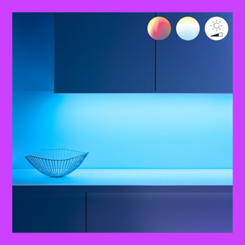WiZ Lichtstrip - Uitbreidingset - Slimme Verlichting - Gekleurd en Wit Licht - 1 Meter - Wi-Fi. Met dit handige verlengstuk van 1 meter kun je de, apart verkrijgbare, WiZ gekleurde LED-strip verlengen tot maximaal 10 meter. Plak de slimme en zeer flexibele LED-strip heel eenvoudig op elk oppervlak. Instelbaar van warmwit licht tot daglicht, oneindig veel kleuren en de strip werkt op je wifinetwerk thuis.