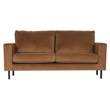 WOOOD 2,5 zits bank Robin cognac fluweel gestoffeerd