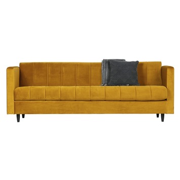 De WOOOD Fiona 3-zits bank in oker geel velvet is een echte aanwinst in je interieur. Deze trendy en stijlvolle 3-zits bank heeft een comfortabel zit- en rugkussen met ingestikte naden waardoor de bank een luxe uitstraling krijgt. Bank Fiona is bekleed met een zachte velvet polyester stof in de kleur oker geel. De houten poten zijn zwart gelakt. De Fiona 3-zits bank is ook verkrijgbaar in de kleur warm groen.