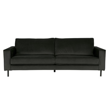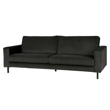 De WOOOD 3-zits bank Robin antraciet fluweel polyester is een royale en stijlvolle bank die perfect past in elke woonkamer. Dankzij de middelhoge zwarte metalen poten oogt de bank ruimtelijk en modern, terwijl de diepe antracietkleur en de zachte fluwelen stof zorgen voor een luxe uitstraling. Met een zithoogte van 44 cm, een zitbreedte van 199 cm en een zitdiepte van 50 cm biedt de Robin ruimte voor drie personen en een comfortabele plek om te ontspannen.
