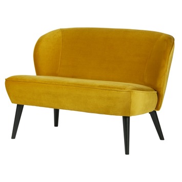 Het WOOOD bankje Sara is een bankje met zwart gelakte beukenhouten poten en comfortabele zit. Het bankje is gestoffeerd in de kleur okergeel met een 100% polyester fluweel stof. Bij deze bank Sara zijn ook bijpassende fauteuil, poefjes en een hocker apart verkrijgbaar. De bank Sara is verkrijgbaar in verschillende kleuren.
