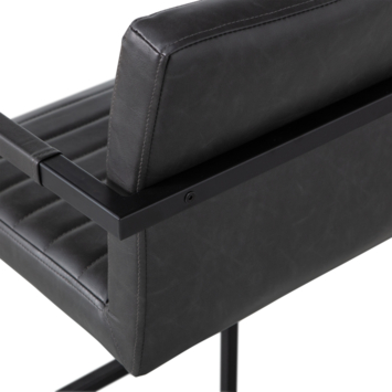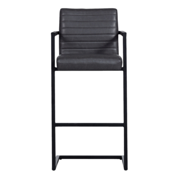 De Abe barstoel uit de collectie van het Nederlandse merk WOOOD is een modern ontwerp met een strak design. De zitting en rugleuning van Abe zijn bekleed met een zwarte PU leatherlook. Het slanke frame is gemaakt van metaal met een matzwarte poedercoating. Extra fijn: de metalen stang om de voeten comfortabel te laten rusten!