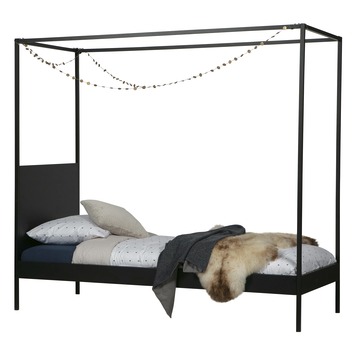 Wie wil er nou niet wegdromen in dit gave Baron hemelbed uit de collectie van WOOOD? Het bed is gemaakt van metaal dat is afgewerkt in de kleur zwart. Hemelbed Baron heeft hierdoor een stoer uiterlijk en past perfect in elke slaapkamer. Om de kinderkamer extra gezellig te maken kun je leuke lampjes of vlaggetjesslingers aan het frame hangen. Hierdoor wordt het gelijk een stuk knusser in de slaapkamer!