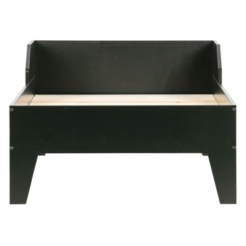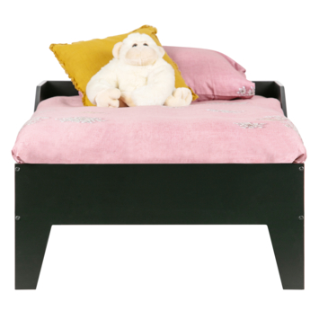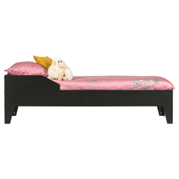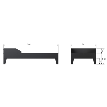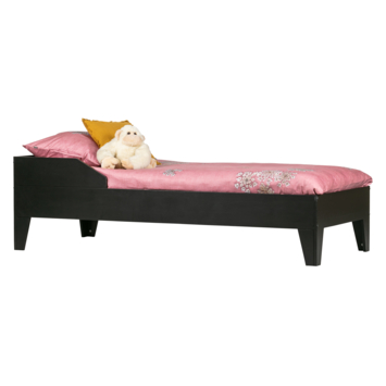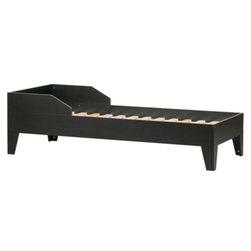 Eigentijds bed. Zwart grenenhout (FSC). Exclusief lattenbodem en matras. Afmetingen (hxbxd): 59 x 204 x 94 cm (90x200cm matrasmaat)