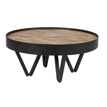 De WOOOD salontafel Dax Ø 74x34 cm heeft een robuust metalen zwart gelakt onderstel en gelakt houten tafelblad van 100% gerecycled teakhout, geeft je interieur een stoere uitstraling. De hoogte van de tafel is 34 cm. Bij deze salontafel Dax is ook een bijpassende bijzettafel Lev verkrijgbaar.