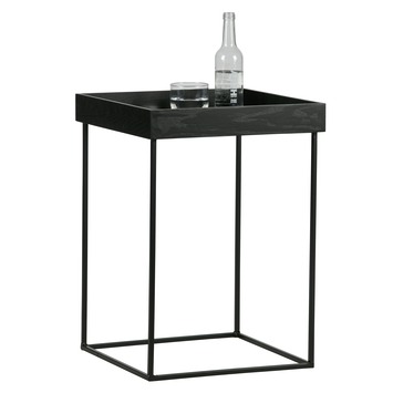 De WOOOD bijzettafel Dexter L heeft een moderne uitstraling en past in elk interieur. Het houten tafelblad en metalen frame zijn beide afgewerkt in een zwarte kleur. Het houten tafelblad zit los op het frame en kan dus gemakkelijk als dienblad worden gebruikt.