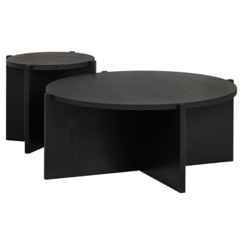 Het materiaal van deze bijzettafel is grenen in de kleur zwart.. De afmetingen zijn dia meter 80cm hoog 36cm. Deze is goed te combineren met de kleinere Didi tafel zodat je een leuke set kunt neerzetten