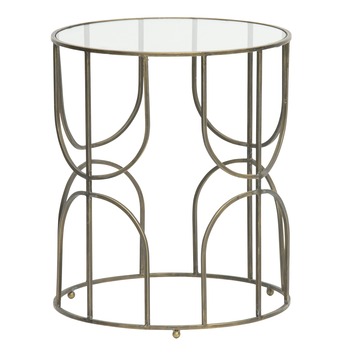 De hippe bijzettafel Helena is van het Nederlandse merk WOOOD. De combinatie van het geometrische antique brasskleurige metalen frame met het glazen tafelblad, geeft deze stijlvolle bijzettafel klasse. Helena is met haar unieke design een echte eyecatcher in elk interieur.