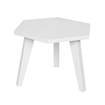 De WOOOD bijzettafel Hex 60x52x43 cm is een zes-hoekige massief, FSC gecertificeerd, grenen bijzettafel afgelakt in de kleur wit met drie poten en een tafelbladdiameter van 60x52 cm met een hoogte van 43 cm. De Hex bijzettafels kunnen als een puzzel op een speelse manier gecombineerd worden tot een set van twee, drie of vier tafels die aan elkaar geschakeld zijn. Zo ontstaat een bijzondere salontafel. Wit gelakt grenen brengt unieke sfeer in huis. Dit artikel wordt als bouwpakket geleverd en is makkelijk te monteren met behulp van de bijgeleverde montage instructie. Deze bijzettafel Hex is ook in het zwart gelakt en in het massief onbehandeld eiken verkrijgbaar.