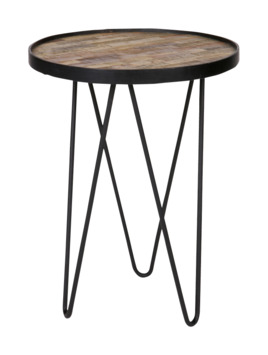 WOOOD bijzettafel Lev hout en zwart gelakt metaal Ø39x52 cm