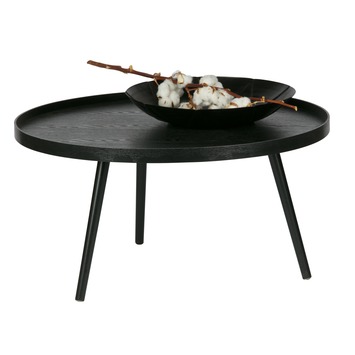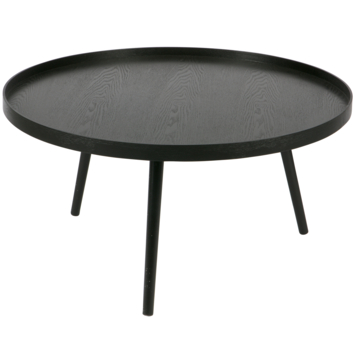 De WOOOD bijzettafel Mesa XL zwart MDF hout Ø 78 cm is een veelzijdige en stijlvolle tafel die moeiteloos in uiteenlopende interieurs past. Het ronde tafelblad met opstaande rand en de drie stevige poten geven de tafel een retro uitstraling die zowel in moderne als klassieke woonkamers tot zijn recht komt. Dankzij de royale diameter van 78 cm en de hoogte van 39 cm biedt Mesa XL volop ruimte voor decoratie, boeken of een gezellig koffiemoment.