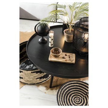 De WOOOD bijzettafel Mesa XXL (hxø) 36x100 cm is een zwart gelakte houten bijzettafel met een rond bovenblad met opstaande rand en 3 tafelpoten in retro woonstijl. Het blad van de Mesa bijzettafel XXL heeft een doorsnede van 100 cm en hoogte van 36 cm en kan in elke woonstijl worden geplaatst van modern tot klassiek. Naast deze maatvoering zijn er nog kleinere varianten beschikbaar in de kleur zwart en naturel hout.