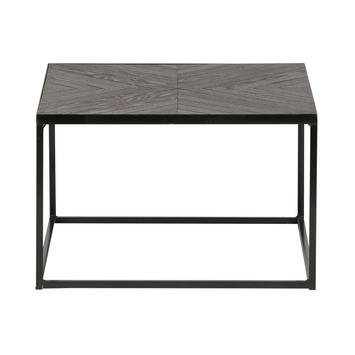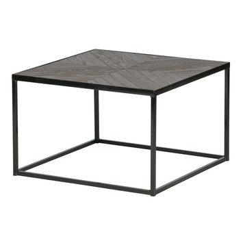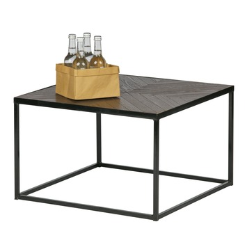 De WOOOD bijzettafel Rio, afmeting (hxbxl) 33x55x55 cm, met een massief visgraat patroon houten tafelblad, is trendy en geeft een warme moderne uitstraling. Het massief houten tafelblad dat in het metalen frame valt, is afgelakt met een sterke lak in de kleur bruin. De bijzettafel Rio heeft een industrieel zwart metalen en modern vormgegeven onderstel. Deze eigentijdse bruin gelakte bijzettafel Rio met zwart metalen onderstel is op vele manieren te gebruiken o.a. als salontafel, hoektafel, plantentafel of plaats hierop een eigentijdse tafellamp. Je kunt deze afmeting 33x55x55 cm ook mooi combineren met de bijzettafel Rio in de afmeting (hxbxl) 38x60x60 cm. De bijzettafel Rio is ook verkrijgbaar in de afmeting (hxbxl) 38x60x60 cm en met een zwart gelakt houten tafelblad zonder het visgraat patroon.