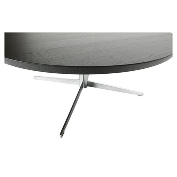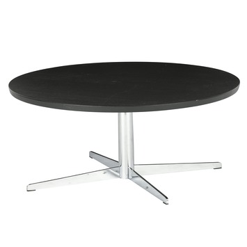 De verchroomd stalen 4-teenspoot (hxØ) 32,6 cm x 73 cm, geeft de tafel een retro-touch.