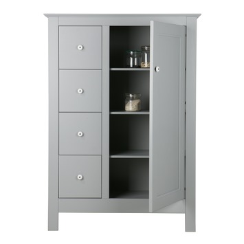 De WOOOD broodkast Emma (hxbxd) 144x104x40 cm is een brocante wandkast en is gemaakt van massief FSC gecertificeerd grenenhout en is in kleur betongrijs gelakt. Deze wandkast Emma met laden is tijdloos en past in elke woonstijl. Het interieur van deze kast is gemaakt van gemêlamineerd spaanplaat. De laden hebben metalen ladegeleiders en zijn voorzien van een softclose sluitsysteem. De knoppen zijn van porselein. De deur is voorzien van solide metalen scharnieren en een porseleinen knop. Deze broodkast Emma is ook in het wit gelakt verkrijgbaar.