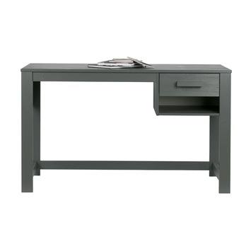 WOOOD bureau Dennis (hxbxd) 75x125x58 cm is staalgrijs van kleur en is een onderdeel van de serie Dennis van het merk WOOOD. De serie Dennis is verkrijgbaar in twee kleuren grijs, betongrijs en staalgrijs. Kies voor één van de kleuren of maak een spannende mix met beide kleuren grijs. Creëer de perfecte slaapkamer met deze serie Dennis. Het bureau Dennis heeft een handige lade met houten greep en is voorzien van solide metalen ladegeleiders. Onder de lade zit een open opbergvak. Het bureau is gemaakt van massief grenen, gespoten in de kleur staalgrijs en heeft een geborstelde afwerking. Bij het borstelen van grenen meubelen wordt de nerf sterk geaccentueerd en ontstaat een doorleefd oppervlak.