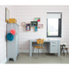 Het bureau is uitgerust met een handige lade op metalen ladegeleiders en een kastje met deur, inclusief metalen scharnieren en houten greep. Deze indeling biedt volop ruimte voor schrijfwaren, boeken en andere benodigdheden. De pootdikte van 28 cm en een tafelblad van 1,8 cm dik zorgen voor een stevige constructie. Met een werkhoogte van 72 cm is bureau Dennis geschikt voor zowel studeren, werken als creatieve bezigheden. Het tijdloze ontwerp en de stoere betongrijze kleur maken dit bureau eenvoudig te combineren met andere meubels.