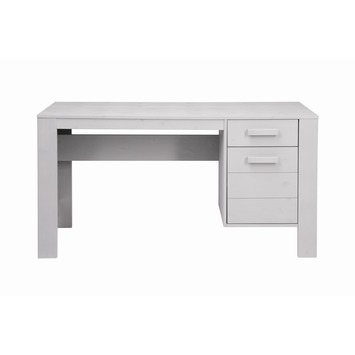 De WOOOD bureau Dennis kiezelgrijs is een onderdeel van de serie Dennis van het merk WOOOD. De serie Dennis is verkrijgbaar in twee kleuren grijs, kiezelgrijs en staalgrijs. Kies voor één van de kleuren of maak een spannende mix met beide kleuren grijs. Creëer de perfecte slaapkamer met deze serie Dennis. Het bureau Dennis heeft een handige lade met een metalen ladegeleider met daaronder een kastje met deur met metalen scharnieren en houten greep. Het bureau is gemaakt van massief grenen, gespoten in de kleur kiezelgrijs en heeft een geborstelde afwerking. Bij het borstelen van grenen meubelen wordt de nerf sterk geaccentueerd en ontstaat een doorleefd oppervlak. De afmetingen zijn (bxhxd): 141x74x59 cm. In deze serie Dennis zijn de volgende artikelen verkrijgbaar: bed, bedbank, nachtkastje, kast en opbergkist in de kleuren kiezelgrijs of staalgrijs. Het bureau wordt als bouwpakket geleverd en is makkelijk te monteren met behulp van de bijgeleverde montage instructie.