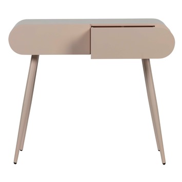 De fraai vormgegeven zachtroze gelakte MDF top, in combinatie met de metalen poten, gelakt in de zelfde kleur zachtroze, geven dit meubel een unieke uitstraling. Sidetable Flo met haar twee laden kan ook uitstekend dienst doen als werkplek. De twee royale lades bieden een ruime opbergmogelijkheid voor losse rommeltjes.