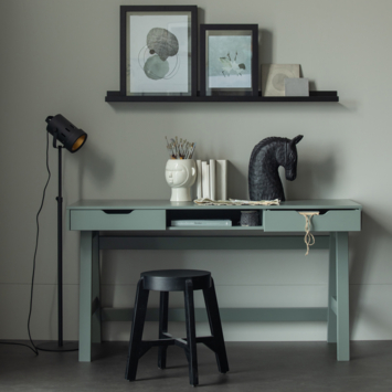 WOOOD bureau Nikki (hxbxd) 75x140x62 cm is een onderdeel van de slaapkamerserie Nikki. Creëer de perfecte slaapkamer met deze serie Nikki. Het bureau Nikki heeft 2 handige laden met een metalen ladegeleider en een open vak in het midden. Het bureau is gemaakt van massief grenen, gelakt in de kleur jadegroen en heeft een geborstelde afwerking. Bij het borstelen van grenen meubelen wordt de nerf sterk geaccentueerd en ontstaat een doorleefd oppervlak. Voor bij het bureau Nikki zijn er ook bijpassende krukjes verkrijgbaar zoals in hoogte verstelbaar krukje Lily, het krukje Fem of het krukje Nomi.