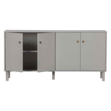 Achter de vier deuren met goudkleurige knoppen bevinden zich in totaal vier legplanken. Iedere ruimte meet 76 x 43 x 20 cm, waardoor er genoeg plek is voor het netjes opbergen van servies, glaswerk, linnengoed of andere spullen die je graag binnen handbereik hebt. Het royale bovenblad is bovendien ideaal om te decoreren met een lamp, een vaas of persoonlijke accessoires die jouw woonkamer een persoonlijke touch geven.