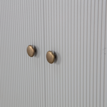 - Vier deuren met goudkleurige knoppen en vier legplanken