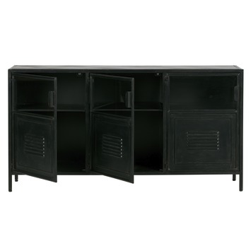 Het WOOOD Ronja dressoir is een stoer dressoir en is geheel gemaakt van metaal, dat is afgelakt in een zwarte kleur. Door het zwarte metaal komt het stoere industriële karakter sterk naar voren. Het Ronja dressoir past in iedere woonstijl.