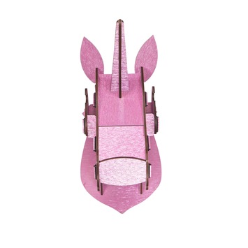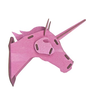 Deze roze met glitter MDF éénhoornkop kleedt de kinderkamer helemaal aan! De éénhoornkop wordt als bouwpakket geleverd en bestaat uit 22 onderdelen, welke doormiddel van een elastiek aan elkaar worden verbonden. De afmetingen van de éénhoornkop zijn (hxbxd): 53x47x23 cm. De kop kan bevestigd worden d.m.v. een schroef in de muur. Deze schroef wordt niet meegeleverd.