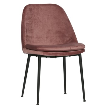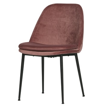 De WOOOD eetkamerstoel Amy fluweel zachtroze is een moderne en elegante eetkamerstoel. De eetkamerstoel is bekleed met een rijke velvet stof in de kleur zachtroze. De poten zijn gemaakt van metaal en afgewerkt in de kleur zwart. De eetkamerstoel Amy wordt verkocht per set van 2.