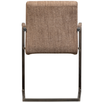 De bruine geweven stof is onderhoudsvriendelijk en eenvoudig schoon te maken met een lichtvochtige doek en een neutraal schoonmaakmiddel. Plaats viltglijders onder de metalen poten om krassen op harde vloeren te voorkomen. De stoel wordt geleverd met een duidelijke montagehandleiding en is eenvoudig zelf in elkaar te zetten.