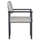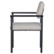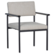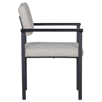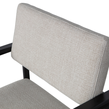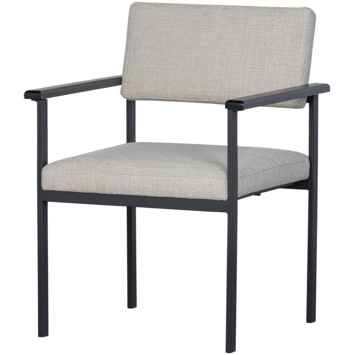 De poten zijn gemaakt van metaal met een matzwarte finish. De zitting is opgebouwd uit een houten frame met een standaard foam vulling van 7 cm dik. De zitting is bekleed met een eenvoudig te onderhouden, gemêleerde stof van 100% polyester.
